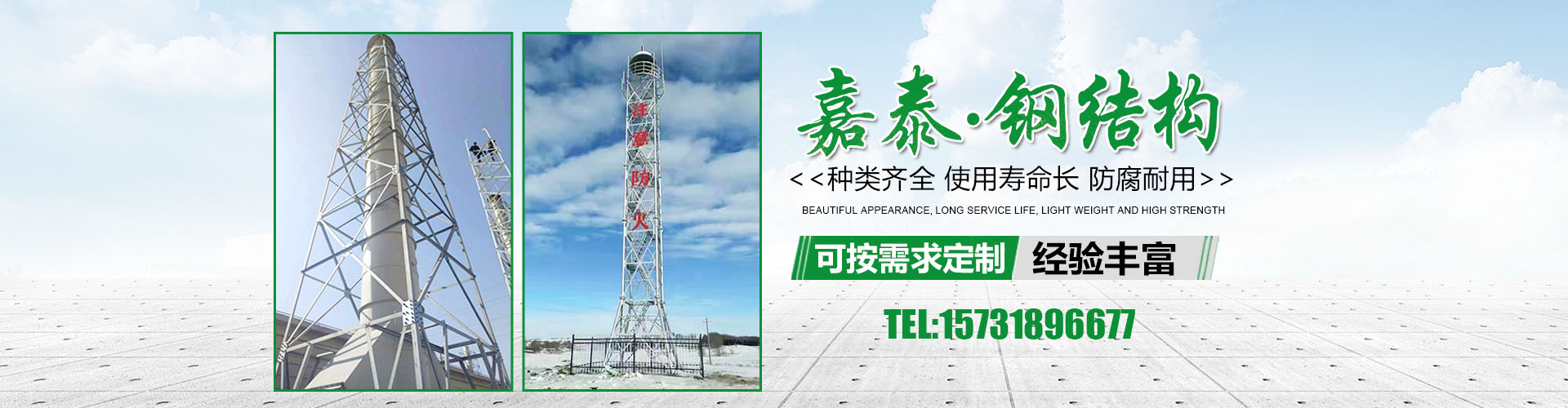 衡水嘉泰鋼結構有限公司位于鐵塔制造之鄉(xiāng)-衡水市景縣廣川經濟開發(fā)區(qū),石德、京九鐵路交匯處,距北京、天津、石家莊、濟南均在2小 時交通圈內,交通便利。公司主要產品有:避雷塔、監(jiān)控塔、瞭望塔、消防訓練塔、電力架構、樓頂工藝塔、廣播電視塔、煙囪塔、測風塔 、電力塔、單管塔、雷達塔、仿生樹塔、氣象觀測塔、路燈桿,一體化基站、ETC龍門架等,是一家集設計,生產,運輸,安裝,維護為一體的廠家。主要服務于鐵塔公司、通信三大運營商、國防通訊,鐵路及森 ......